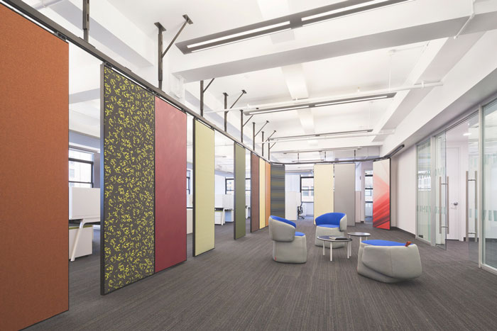 辦公區(qū)域的設(shè)計:懸掛的隔斷如一扇扇門將辦公區(qū)域擋在視線之外,但懸掛的隔斷不是死的而是靈活的,一扇扇可拉可合,開放的辦公區(qū)加上半封閉的個人辦公區(qū),兩者之間形成一個很好的結(jié)合,這樣的設(shè)計旨在消除弊端,同時也在為企業(yè)營造利于發(fā)展的辦公新格局。